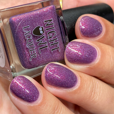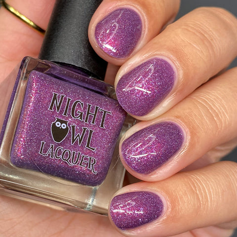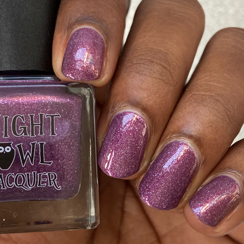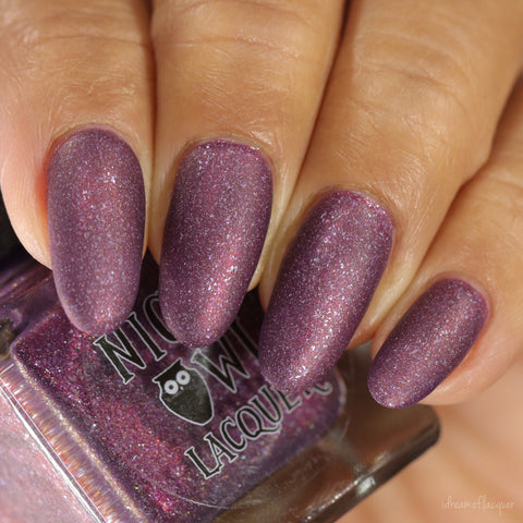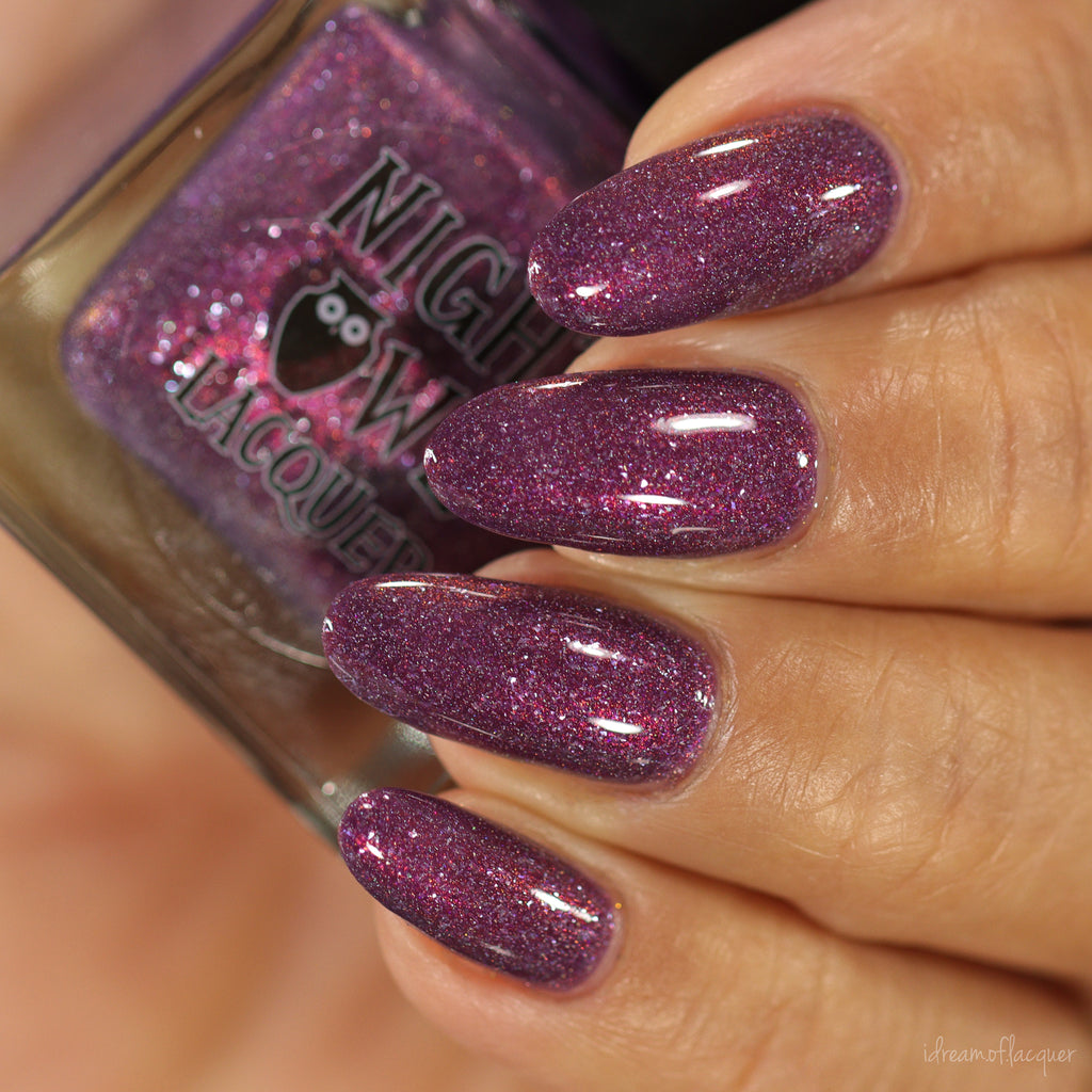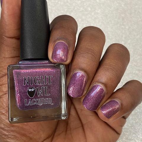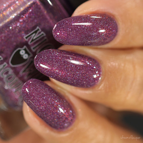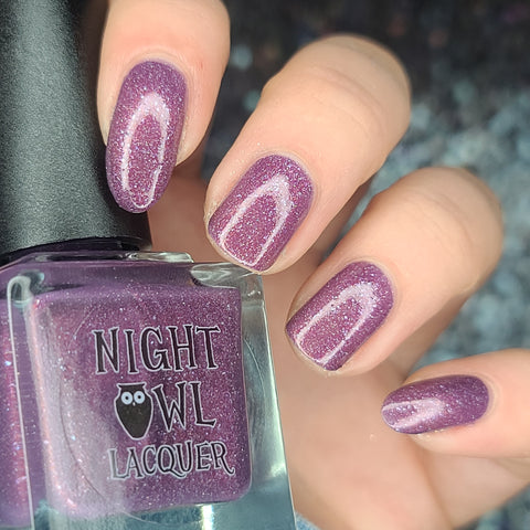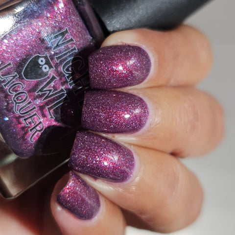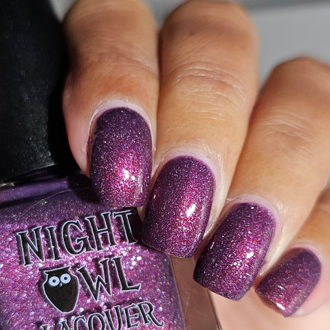 This is a deep dusty plum with red/magenta shimmer, glass flecks and holographic dust.