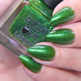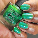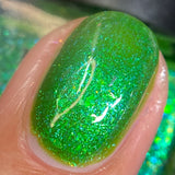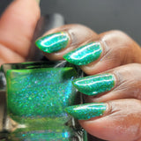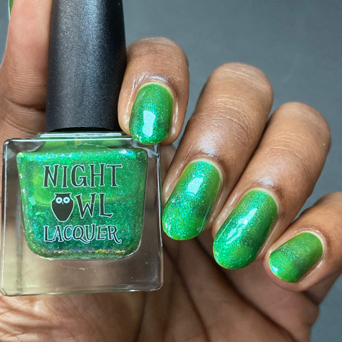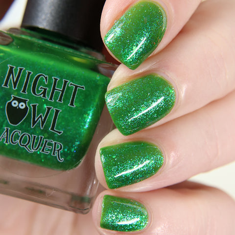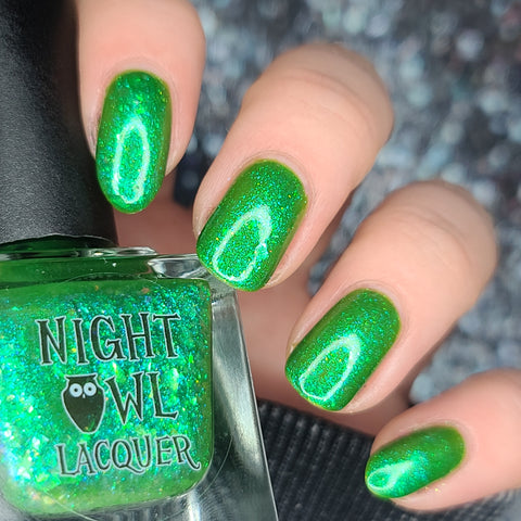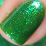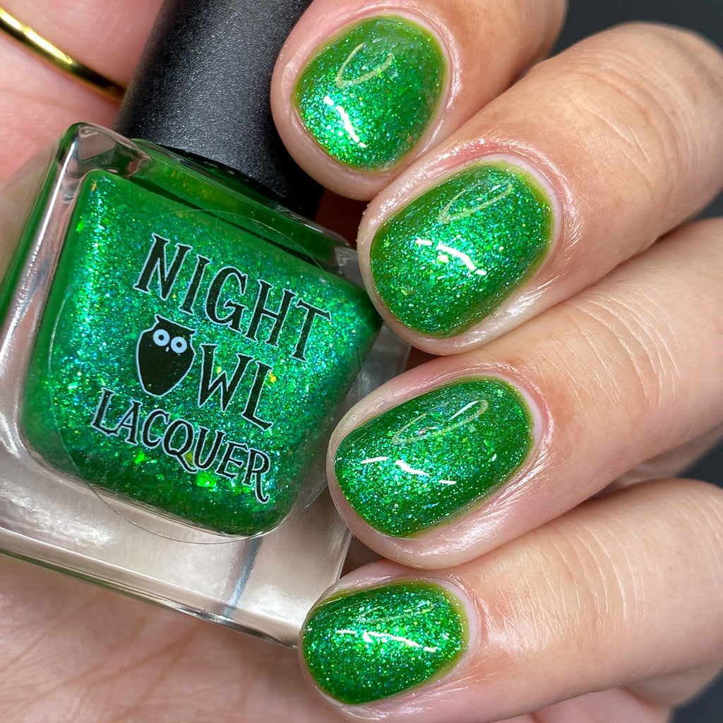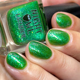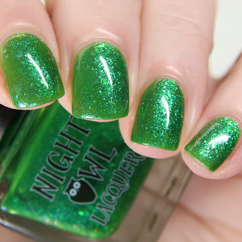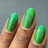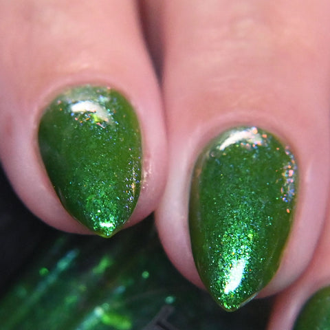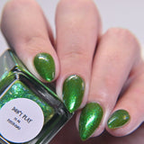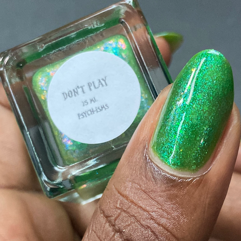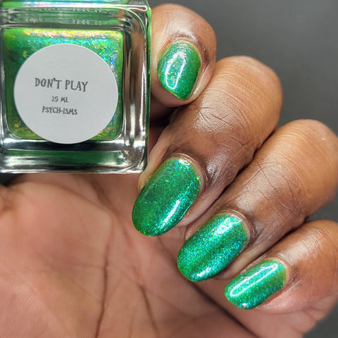 Don't Play - this is a grass green filled with contrasting color shifting micro flakie shimmer and crystal flakes.